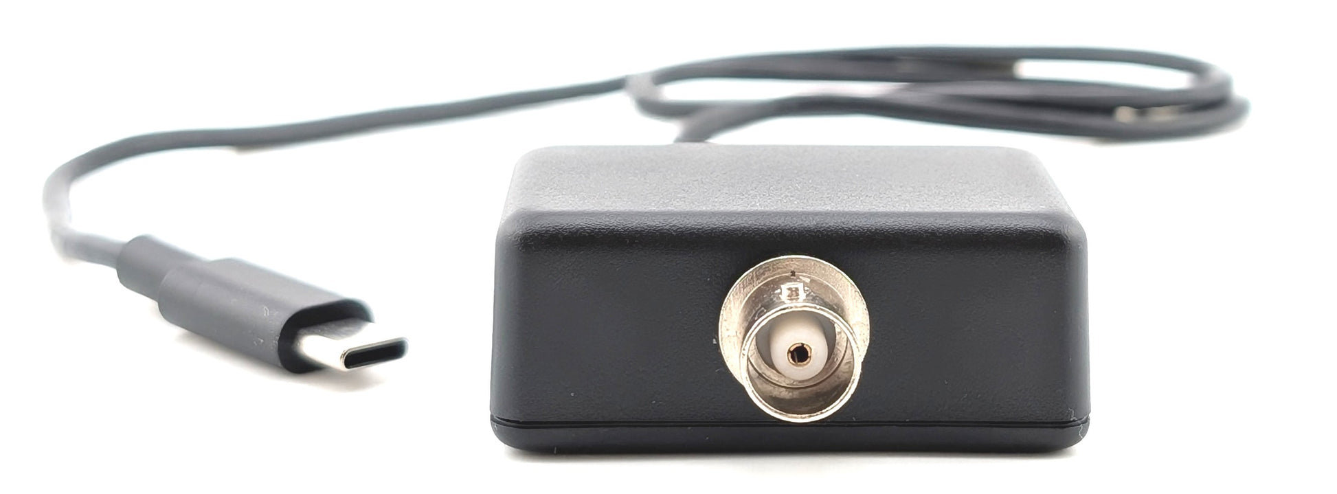 The Barcoder operates on 5 V from a standard USB-C input. It needs less than 100 mA of power. For convenience, the Barcoder has two BNC connectors that carry the same output sequence, synchronized to within than 10 nanoseconds of each other. Each connector can source and sink 20 mA and may be “T-ed” (split) to a practically unlimited number of recording devices. The output level is 5 V.